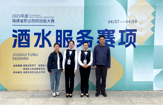 4月7日至9日,2025年福建省职业院校技能大赛“酒水服务”赛项在福建信息职业技术学院举办。24名选手同台竞技,我院陈哲、林瑾两位老师指导的学生陈可欣、陈冉荣获三等奖。