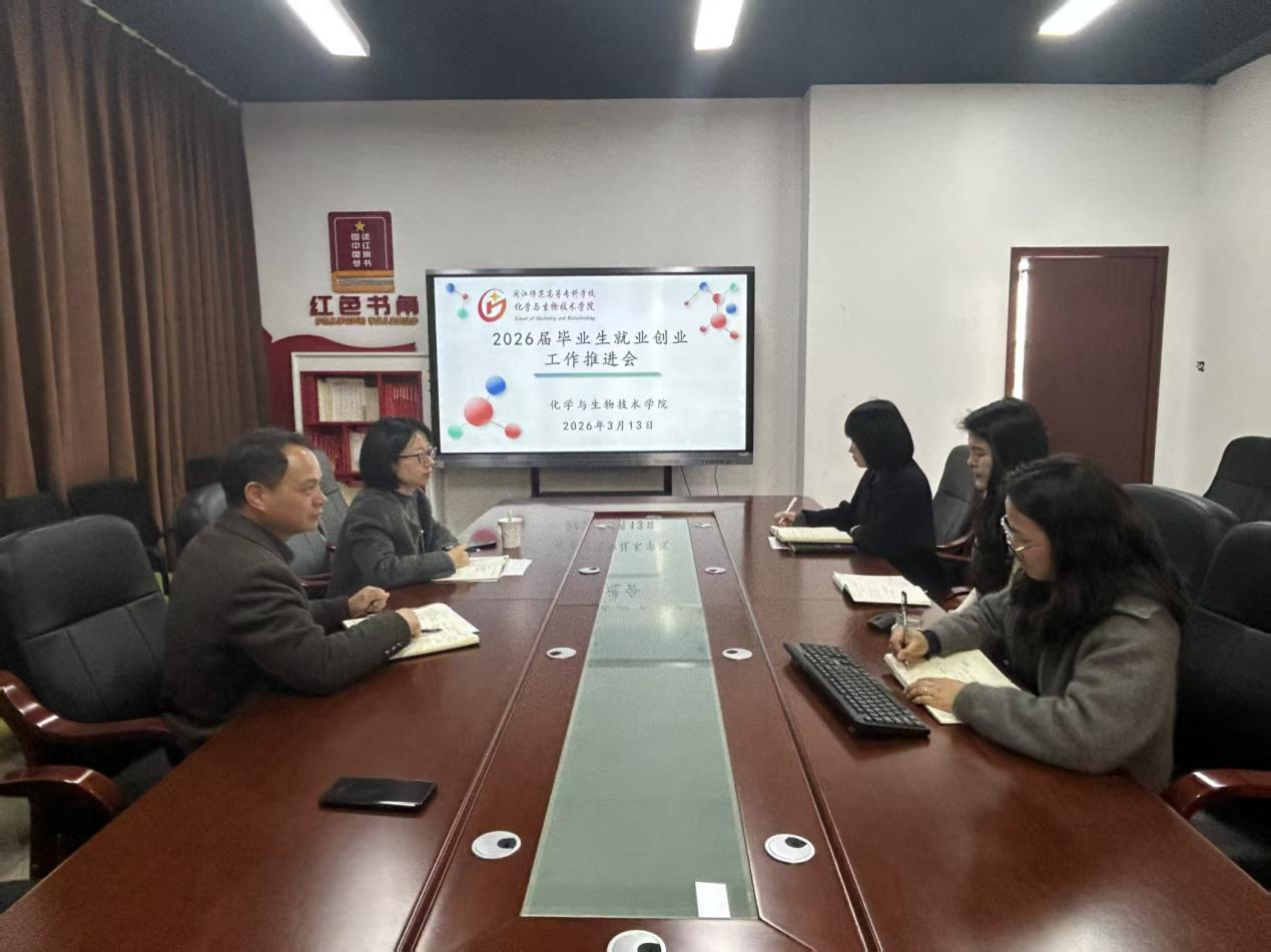 2026年3月13日下午,化学与生物技术学院在党员活动室召开2026届毕业生就业创业工作推进会,学院党总支书记王华、分管学生工作副院长袁晓娟及全体毕业班辅导员参会。