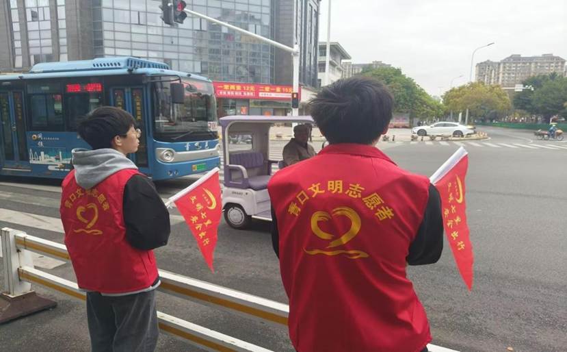 志愿者进行交通劝导