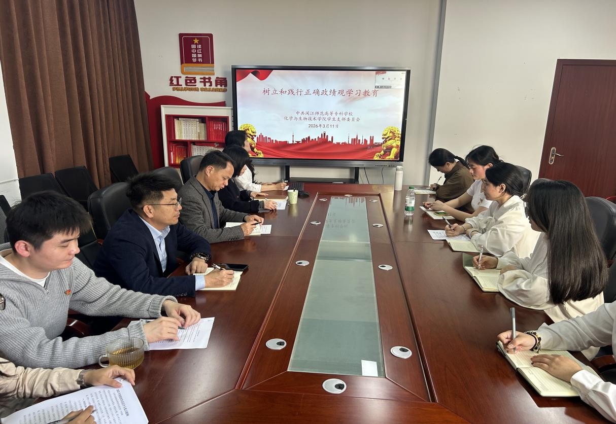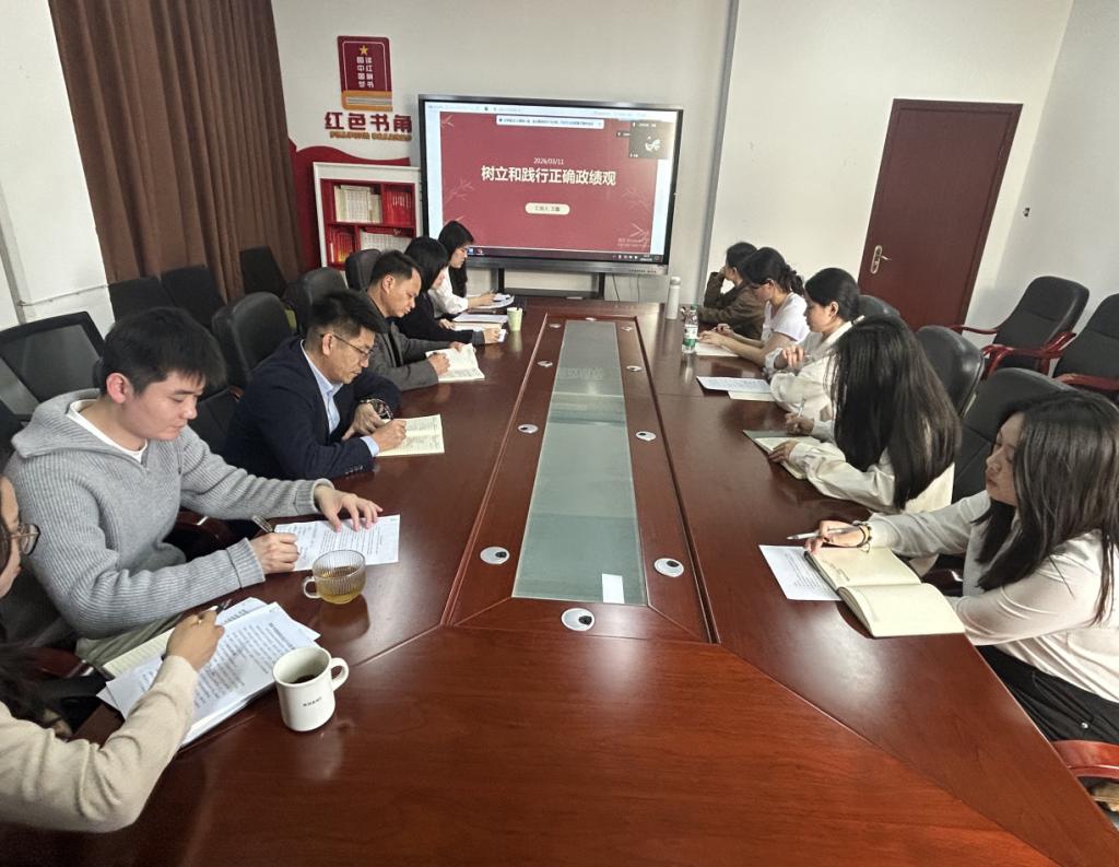 为深入学习贯彻习近平总书记关于树立和践行正确政绩观的重要论述,引导党员筑牢思想根基,以正确政绩观引领学风建设与成长成才,2026年3月11日化学与生物技术学院学生党支部在党员活动室开展“树立和践行正确政绩观”专题学习教育。
