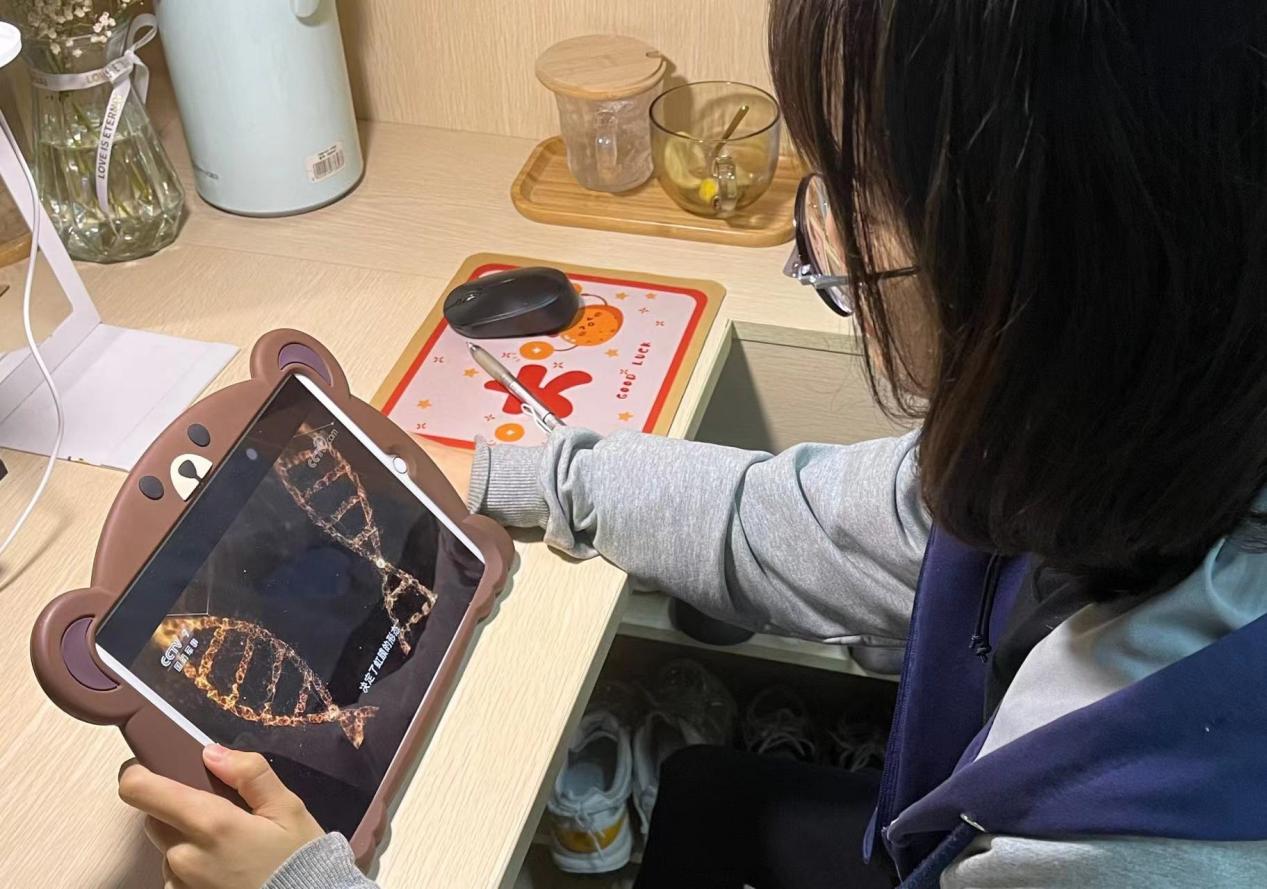 “疫情虽夺去了许多,也赋予我们发现新乐趣的机会。”化生学院的学生们说,“我们更该相信,疫情偷走的那些时光,终会以另一种方式回来。”在严格的校园封闭管理后,我校开始进行线上教学,虽然学习场景不同,但同学们依旧紧跟老师的教学计划与安排,毫不松懈地努力扩充个人的知识水平和能力;另,大家学习之余的生活也一样丰富多彩,其中不乏在宿舍内锻炼身体、练习书法、进行板绘者,既丰富了大学生活,也让原本在疫情笼罩下的校园充满活力;学校还组织学生们每周进行一次核酸检测,并严格管理出入校园,将防疫工作落实到每一个人。