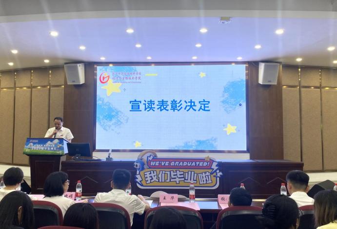 典礼中,对获得“三好学生”“优秀学生干部”“优秀毕业生”“优秀实习生”等荣誉称号的同学进行了表彰,并宣读学院2025届校友联络员名单、颁发聘书。