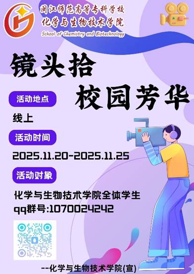为鼓励同学们用镜头发现校园之美,记录学习生活与成长足迹,传承校园文化精神,2025年11月20日-25日,化学与生物技术学院开展“镜头拾校园芳华”摄影大赛活动。