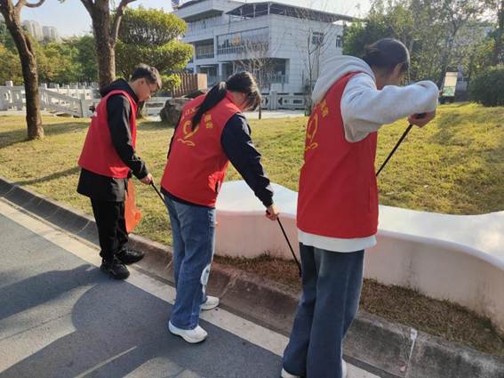 清晨,志愿者们抵达公园后迅速完成分工部署,一场“公益+普法”的实践行动有序展开。交通引导组志愿者在公园周边路口定点值守,耐心疏导往来行人和非机动车,用规范指引维护交通秩序,以真诚微笑守护市民出行安全;环境整治组则手持清洁工具,对公园步道、绿化带等重点区域进行全方位清理,细致捡拾落叶、塑料瓶、烟头等各类废弃物,还原公园整洁靓丽的生态风貌,为市民营造舒适安心的活动空间。