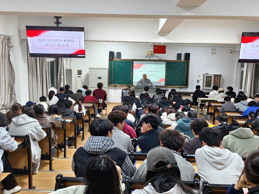 为压实宿舍安全管理责任,畅通信息反馈渠道,建设安全、文明、和谐的校园住宿环境,化学与生物技术学院于2026年3月召开新学期舍长大会。会议由辅导员叶志恒主持,全体舍长参会。