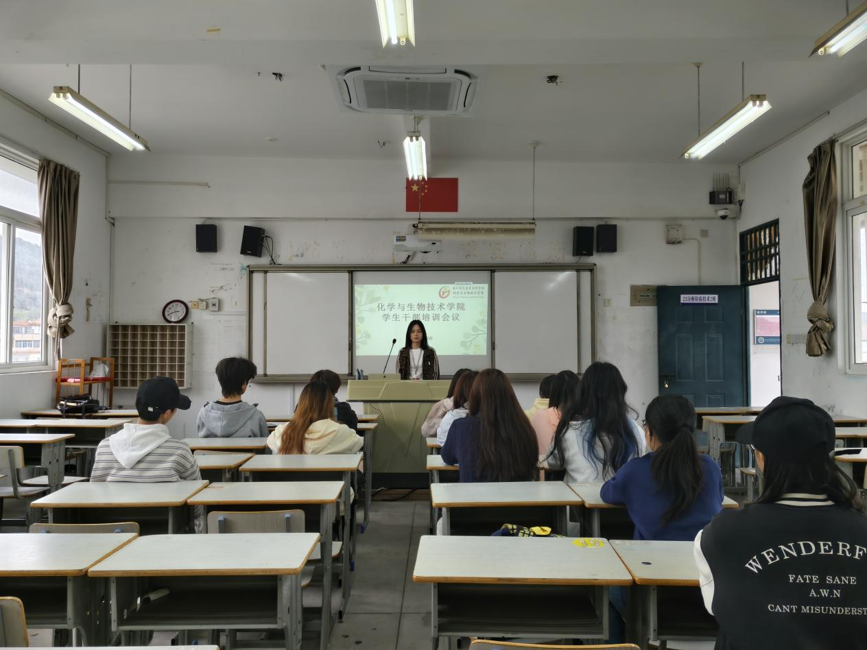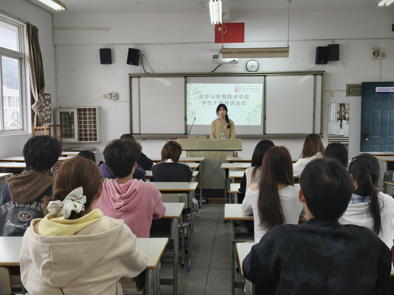 为进一步加强学生干部队伍建设,强化责任意识、服务意识与工作能力,提升学生组织整体工作效能,更好地服务同学、助力学院高质量发展,2026年4月8日,化学与生物技术学院在福清校区召开“强化干部担当 凝聚服务合力”学生干部培训会议,福清校区两委一会全体学生干部参加。