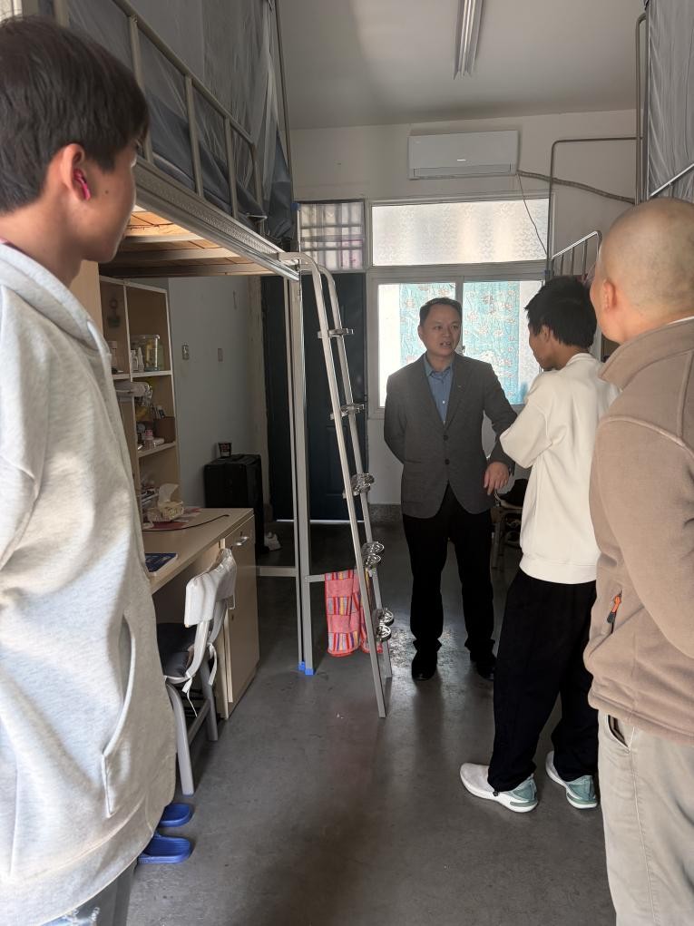 检查中,逐一走访宿舍,重点排查用电安全、消防设施、卫生状况及物品堆放等关键环节。期间,老师们与学生亲切交流,询问学习生活近况,叮嘱大家绷紧“安全弦”,牢固树立安全防范意识,严守宿舍管理规定,杜绝违规电器使用,做到人走断电,防患未然。针对排查发现的安全隐患,领导老师们现场提出明确整改要求,强调“安全无小事”,务必立行立改,消除风险。