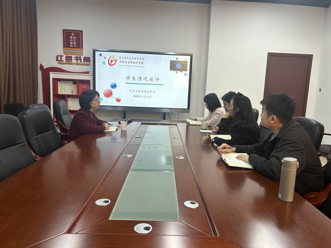 为全面掌握学生思想动态、学业状况与成长诉求,夯实育人根基,提升学生工作实效,2026年1月,化学与生物技术学院在党员活动室召开辅导员学生情况述评会。学院分管学生工作副院长袁晓娟、全体辅导员参加会议。