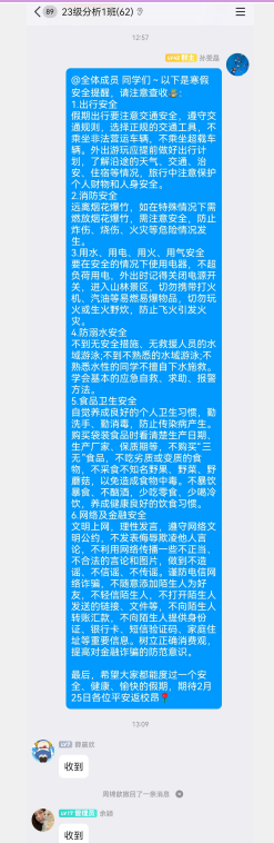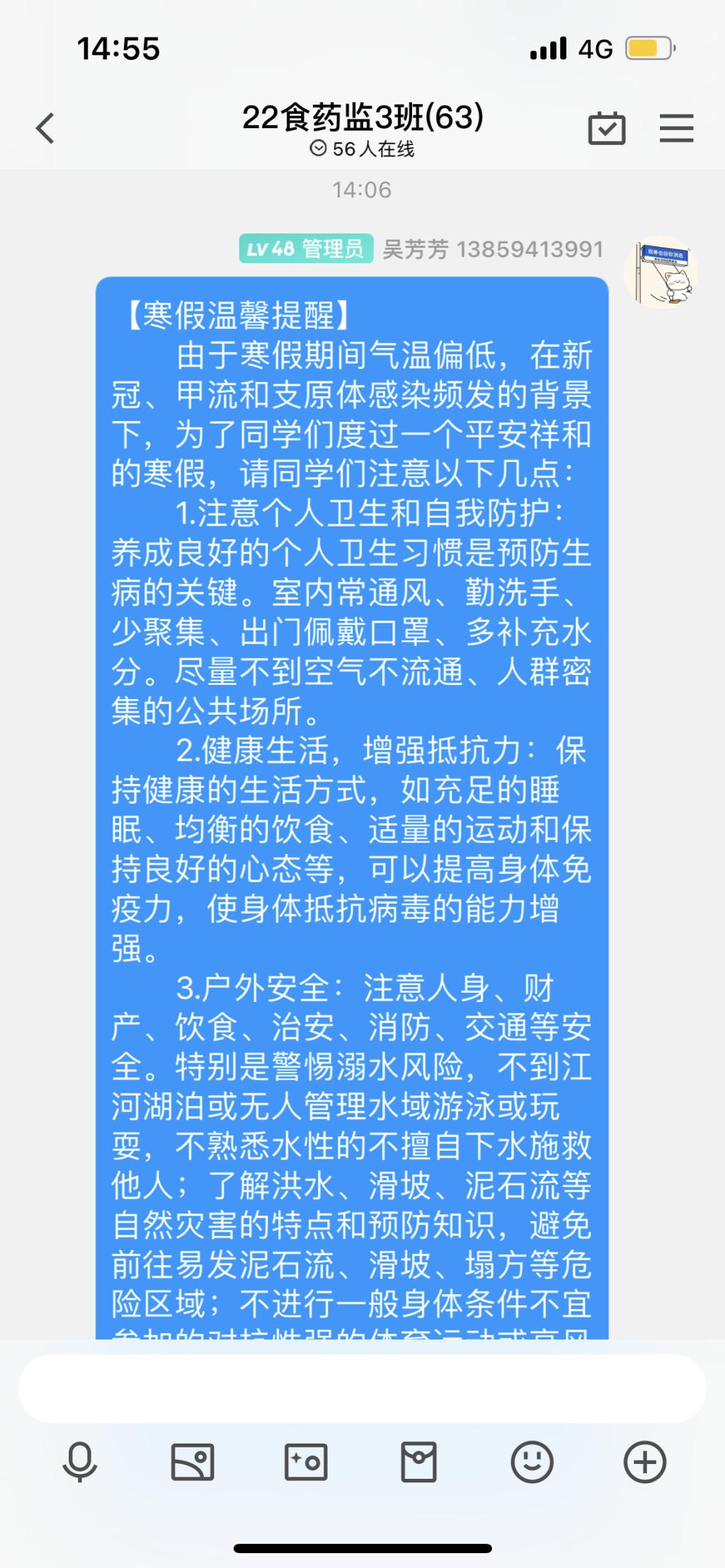 为做好春节寒假期间学生的安全教育,普及安全防范知识,提高学生的自我防护意识,确保学生度过一个平安祥和的寒假,2024年2月1日,化学与生物技术学院线上开展了寒假安全教育。