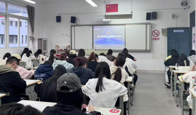 本次公开课内容丰富、形式多样,全方位覆盖政治安全、网络安全、生态安全等多个领域。通过剖析网络诈骗、间谍窃密等一系列真实典型案例,生动展现了国家安全与每个人的生活、学习和工作都息息相关。随后播放的国家安全宣传动画短片,以生动有趣的表现形式,将抽象的国家安全概念转化为通俗易懂的知识,深入浅出地介绍了日常生活中常见的安全威胁,让同学们对维护国家安全的重要性有了更直观的认识。