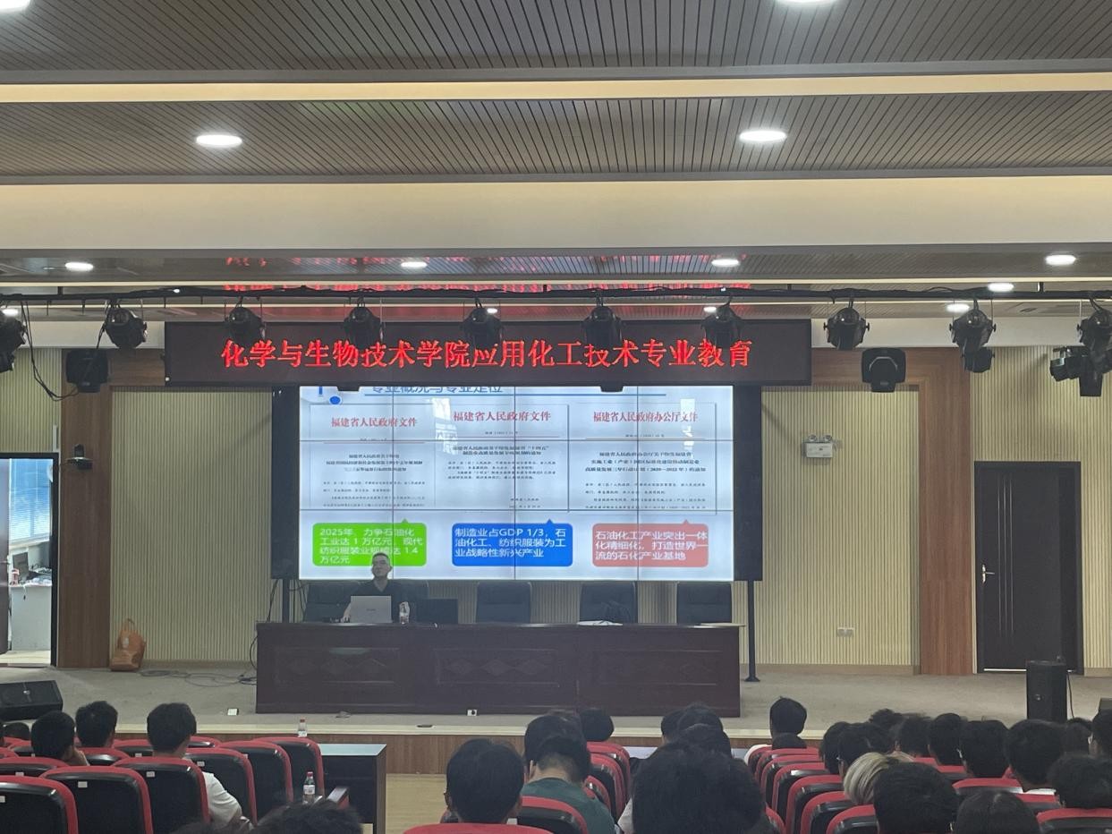 为深化专业内涵建设,精准赋能人才培养,2025年9月24日,化学与生物技术学院在福清校区开展应用化工技术专业教育讲座。本次讲座由学院化工教研室副主任吴伟华主讲,25级应用化工技术专业全体新生参加,为新生开启专业认知的“第一课”。