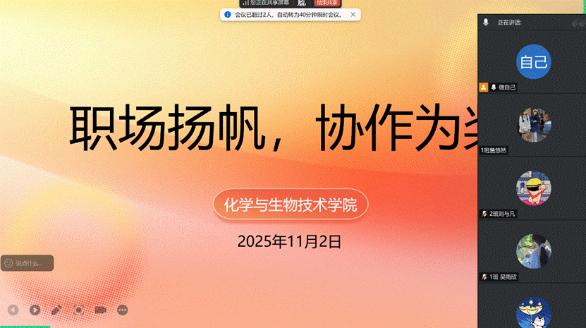 为帮助毕业生提升团队协作与问题解决能力,强化职场适应力与核心竞争力,化学与生物技术学院于2025年11月2日晚组织开展“职场扬帆,协作为桨”主题班会。