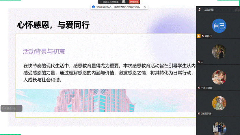 此次班会让同学们深化了对感恩价值的认知,掌握了表达感恩的具体方法,更提升了感恩情感认同度与践行意愿。同学们纷纷表示,今后将常怀感恩之心、常行感恩之举,从点滴小事做起,主动传递温暖与正能量,共同营造和谐友爱的校园文化氛围。