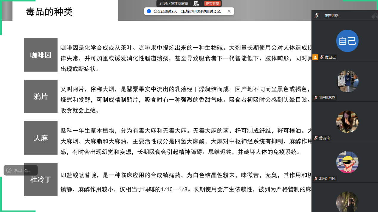 此次班会有效提升学生毒品辨别与自我保护能力,帮助学生树立“健康人生、绿色无毒”“价值观念。学院将持续推进禁毒教育,为学生成长与职业发展筑牢坚实的安全屏障。
