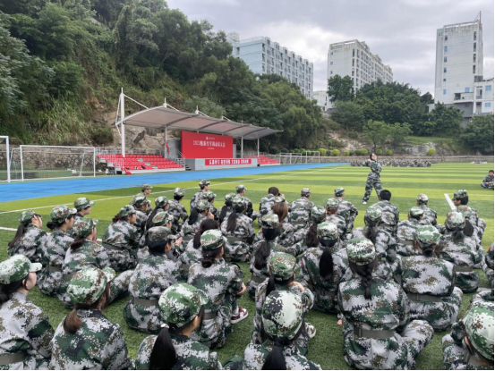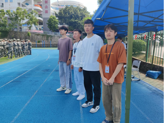 暖心陪伴:军训活动的顺利开展,离不开教官、辅导员、助导的默默付出。训练场上,时而闪过他们的身影,关注着新生军训的一举一动,关心着见习学生身心状况;宿舍里,经常听见他们的声音,那一句句暖心的话语回响耳边,温暖人心,让新生更好地适应校园生活。