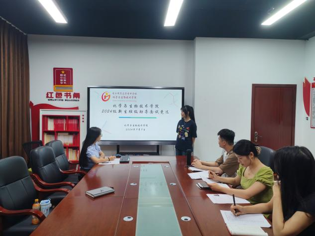 为了做好2024级新生迎新工作,搭建新生与辅导员之间的沟通桥梁,使新生能够更快适应校园生活,2024年9月9日,化学与生物技术学院在党员活动室开展2024级新生助导面试,辅导员龚俊浩、孙雯晶、郑亦琅担任本次面试评委。