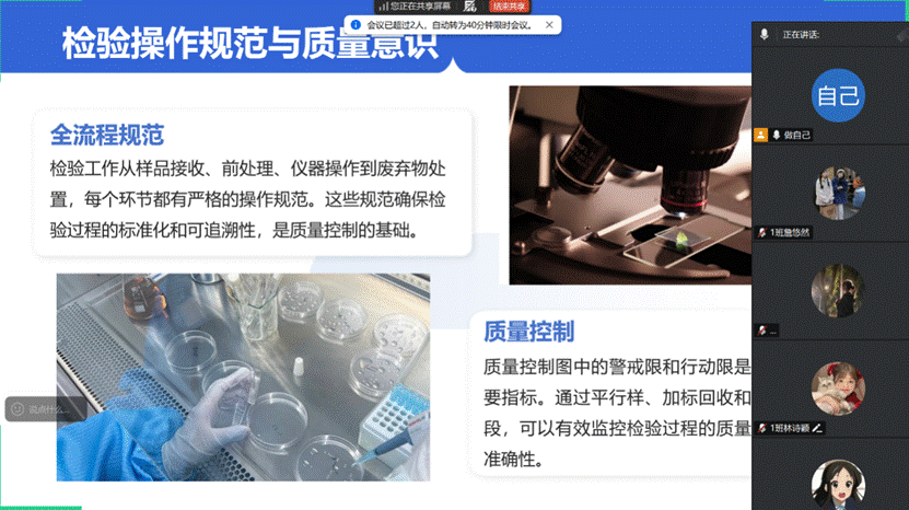 赖老师给24分析检验技术五年专同学讲述检验工作的规范
