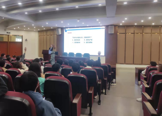 福建九州通医药有限公司负责人为了加深同学们对企业的认知,通过视频介绍及PPT形式详细地向同学们介绍了公司概况、职业发展方向、业务范围以及选择该公司的理由等。同时,负责人就晋升渠道、薪酬福利、招聘需求等内容进行重点介绍,并利用有奖竞答增加同学们对该企业的兴趣。通过他们详细而又简明的阐述,让毕业生们了解了今后的就业岗位,明确了自己的就业方向,在今后的就业选择上少了些盲目,多了些理性。