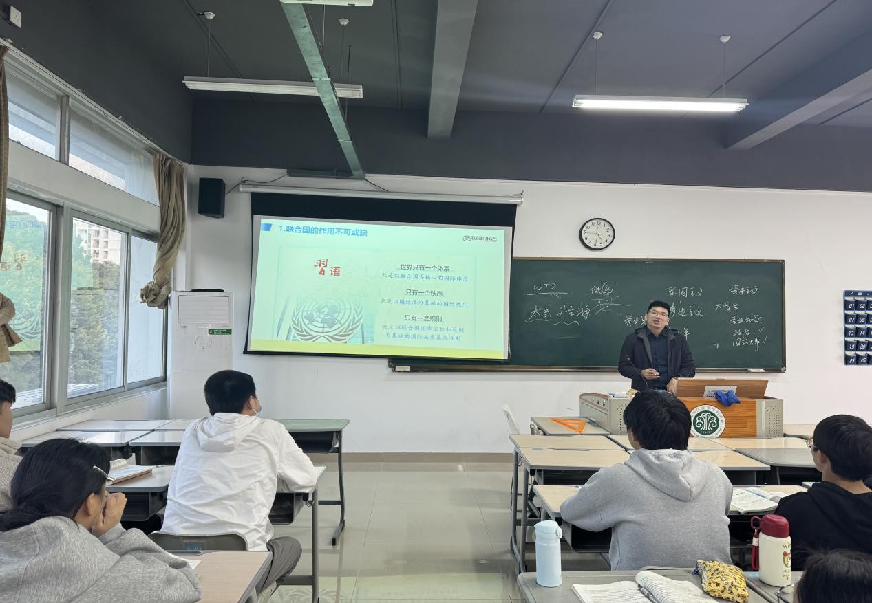 在课堂上,陈宗保院长结合国际政治经济领域的前沿动态,依托典型国家发展案例,深入剖析了当前大国博弈背景下的国际格局深刻调整。在谈及中国在全球治理中的定位时时,他重点解读了中国的双重角色——既是多边主义的践行者,又是全球公共产品的提供者。从南南合作的深化到气候融资的推进,再到债务减免的落实,陈院长通过具体务实举措的梳理,清晰展现了中国维护发展中国家共同利益的立场,以及以负责任大国担当贡献全球治理中国智慧的实践路径。