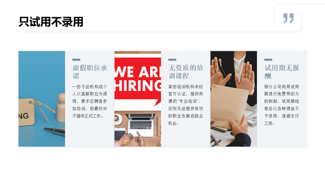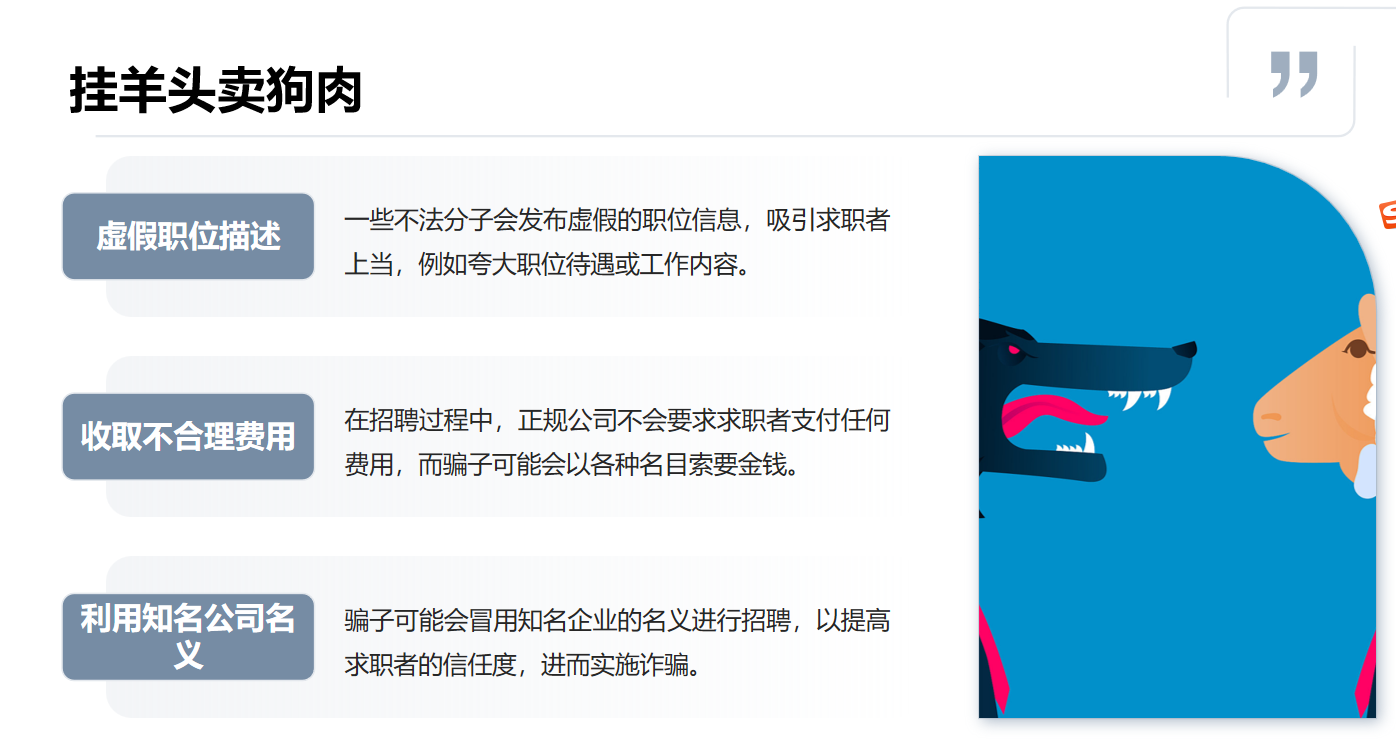 王鑫通过列举“挂羊头卖狗肉”“只面不招”“骗取高额培训费”等案例让同学们了解常见的招聘诈骗手段、培训诈骗手段和合同诈骗手段,增强同学们对职场诈骗的识别能力。他联系实际给出各个方面应对防诈的措施,并提醒同学们在求职过程中应时刻保持警惕,提升了同学们在求职过程中的自我保护意识。最后王鑫向同学们分享求职技巧、入职前注意事项,为学生提供更加全面和实用的就业支持。