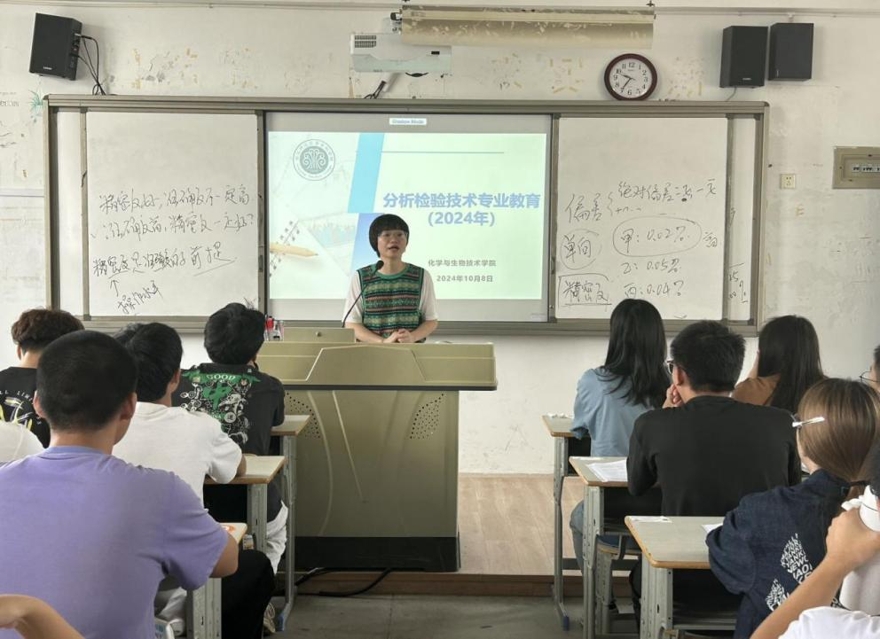 林珍红老师在福清校区为24分析检验技术专业新生介绍了专业概况与定位、师资队伍、教学资源,以及学院荣誉等,帮助新生全面了解专业内容,激励同学们积极参加学院专业活动,充实大学生活,为未来职业工作打下夯实基础。