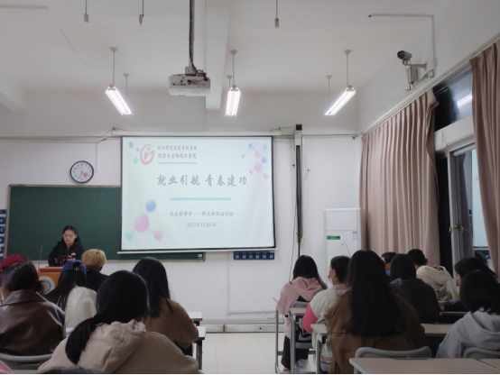 12月6日,范俊鹏从自身的学习和生活经历出发,与2023级学弟学妹深入交流。她用武汉工程大学拍摄的就业短篇引导新生充分了解自身现状,学会独立思考,始终保持学习的欲望,养成良好的学习生活习惯。还鼓励23级同学在校期间积极参与丰富多彩的校园活动,增加阅历,锻造能力,为将来就业奠定良好的基础。最后,她建议每位新生能制定一份属于自己的职业规划,并为之付诸努力,实现人生目标。