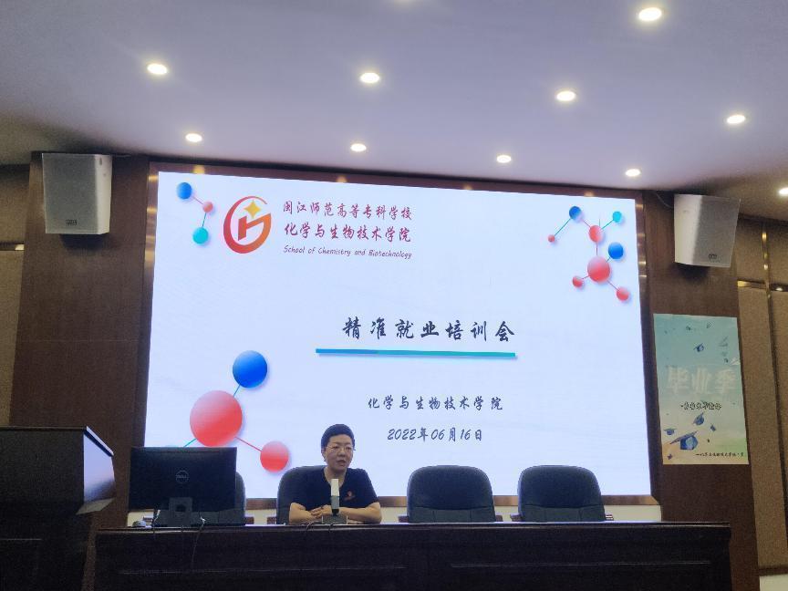 为了消除毕业生在就业中的困惑,进一步帮助同学们树立正确的就业观和择业观,使广大学生了解就业形势、就业政策,转变就业观念,提高就业技能,促进就业,化学与生物技术学院于2022年6月16日在学术报告厅开展了精准就业培训,由学院张瑛副书记主讲。