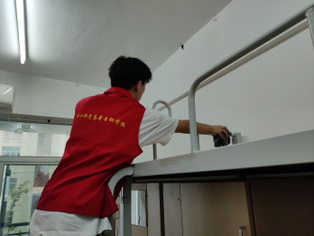 活动一:新生宿舍清扫活动。志愿者提前了解新生宿舍分布情况,整理宿舍床铺、书桌、衣柜等个人区域,清洗宿舍走廊、楼梯、大厅、厕所等公共区域。清扫后,志愿者认真检查宿舍各个区域进卫生,排查宿舍设备是否损坏,确保新生舒适入住。