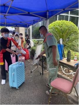疫情防控方面,实行严格管控校门,新生在身份核实、验码,随身行李消毒后方可入校。交通保障方面,预先与交警队取得联系,由交警部门保障校门口的交通秩序。同时租用电瓶车、大巴等解决新生行李搬运之忧。