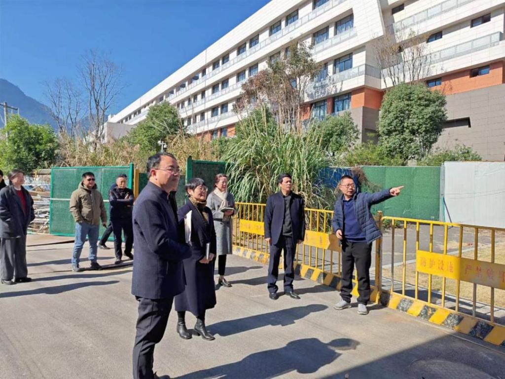 在旗山校区,校长杨建义一行重点查看了二期建设项目宿舍食堂工地以及求知楼、笃行楼、宿舍楼等区域,对宿舍安全、实验实训室安全、用水用电安全、修缮施工安全、在建工程等安全情况进行了全面细致的检查,并针对存在的薄弱环节和风险隐患提出整改意见。杨建义强调,要做好寒假期间校园安全、学生安全管理和服务保障等工作;强化假期校园安全巡查,加强现场安全管理和施工质量监理,确保维修改造工程安全有序推进。