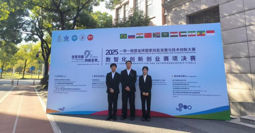近日,2025“一带一路”暨金砖国家技能发展与技术创新大赛之“数智化创新创业赛项”全国总决赛于浙江交通职业技术学院顺利收官。由我校2024级工业软件开发技术专业学生黄江文、黄裕恒、杨雨昕组成的参赛团队(指导教师:兰妥、庄玉),凭借扎实的专业基础、卓越的实践能力在全国选拔赛和总决赛中过关斩将、突出重围,最终荣获全国总决赛一等奖。