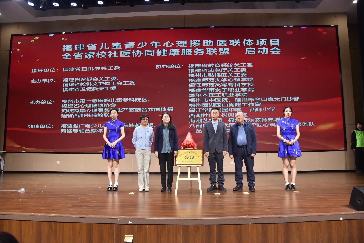 本次活动以“新时代家校社协同守护青少年身心健康”为主题,由福建省直机关关工委指导,福建省贸促会关工委、福建省教科文卫体工会工委、福建省卫健委关工委主办,福州市第一总医院儿童专科院区、福建省心理援助协会、海峡两岸心理服务行业产教融合共同体、福建省西湖书院教联体联合承办,省教育系统关工委等多家单位协办,省直机关关工委常务副主任侯铸龙,省贸促会原副会长、关工委执行主任陈扬,福州市第一总医院夏泳书记等领导嘉宾出席。活动旨在构建覆盖全省、多方联动的心理健康服务体系,切实提升福建省儿童青少年心理健康水平,现场还举行了儿童青少年心理援助中心揭牌、全省九地市成员单位授牌等仪式,标志着覆盖全省的儿童青少年心理援助医联体正式启动。