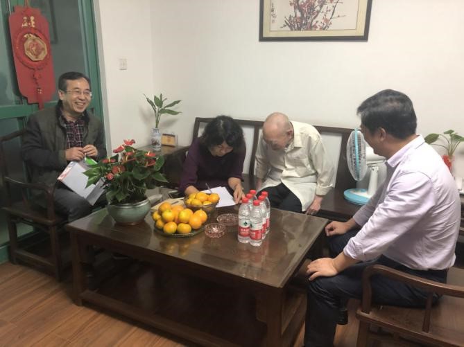 高龄的吴德涵老师耳聋听不见,慰问小组成员用写字的方式与吴老进行了交流,转达了福州市劳模办、教育局、教育工会、闽江师专党委的关怀,询问他的生活和身体状况。吴老对领导的深切关怀表达感谢,对学校的不断发展和进步感到骄傲与自豪,对学校的未来发展前景充满信心。