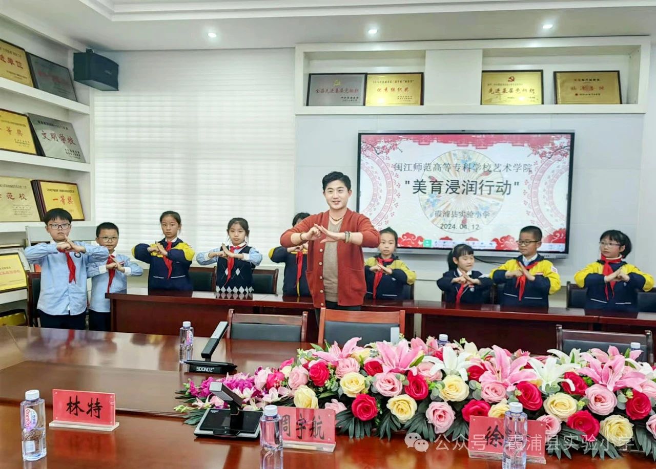4月12日,艺术学院美育浸润行动走进霞浦县实验小学。本次浸润行动围绕一次研讨会、一堂美育课、一场美育演出来展开。