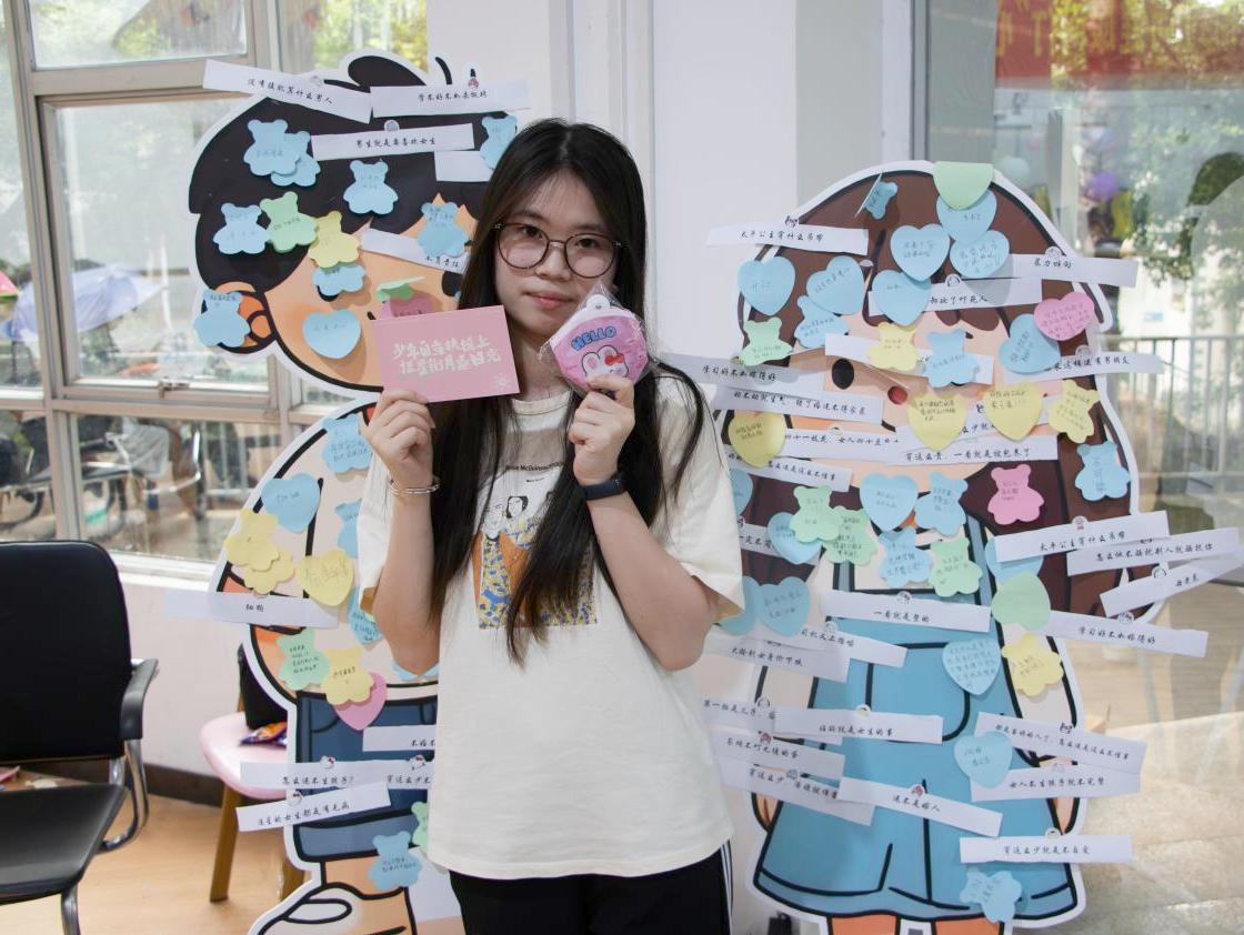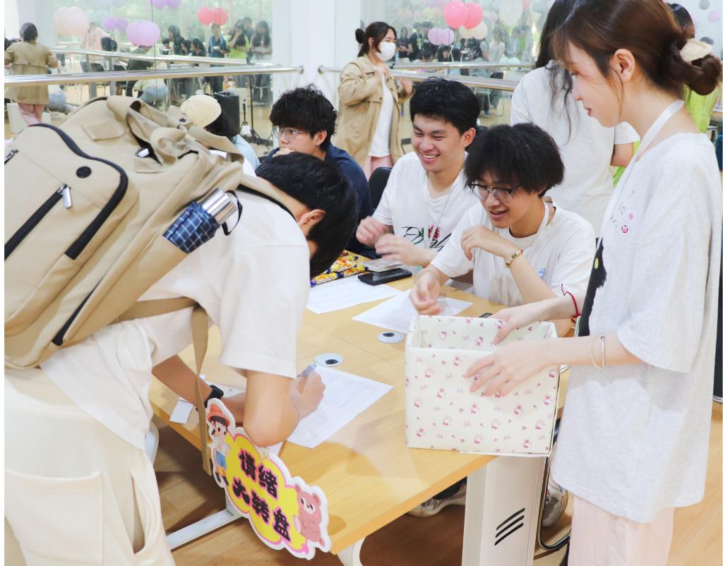 拓展活动设有一个名为“情绪大展示”情绪表达点和五个游戏点。在“情绪大展示”人形立牌上的原有的负面标签逐渐被积极阳光话语替代。一句句青春蓬勃的话语反映了数信学子守护健康心理的心声,也为他们追逐梦想作出了最好的注脚。丰富的内容吸引了广大学生的积极参与,现场氛围热烈,各个打卡点人气火爆,欢声笑语不断。