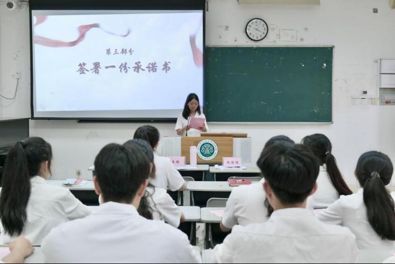 党课结束后,毕业生党员纷纷上台分享自己的入党初心、在校学习经历及未来规划和梦想,并向学校和老师们的悉心教导表达了由衷的感谢。学生党员代表杨维燕宣读了《党员承诺书》,带领同学们庄严签署承诺,进一步明确作为党员的责任与担当。
