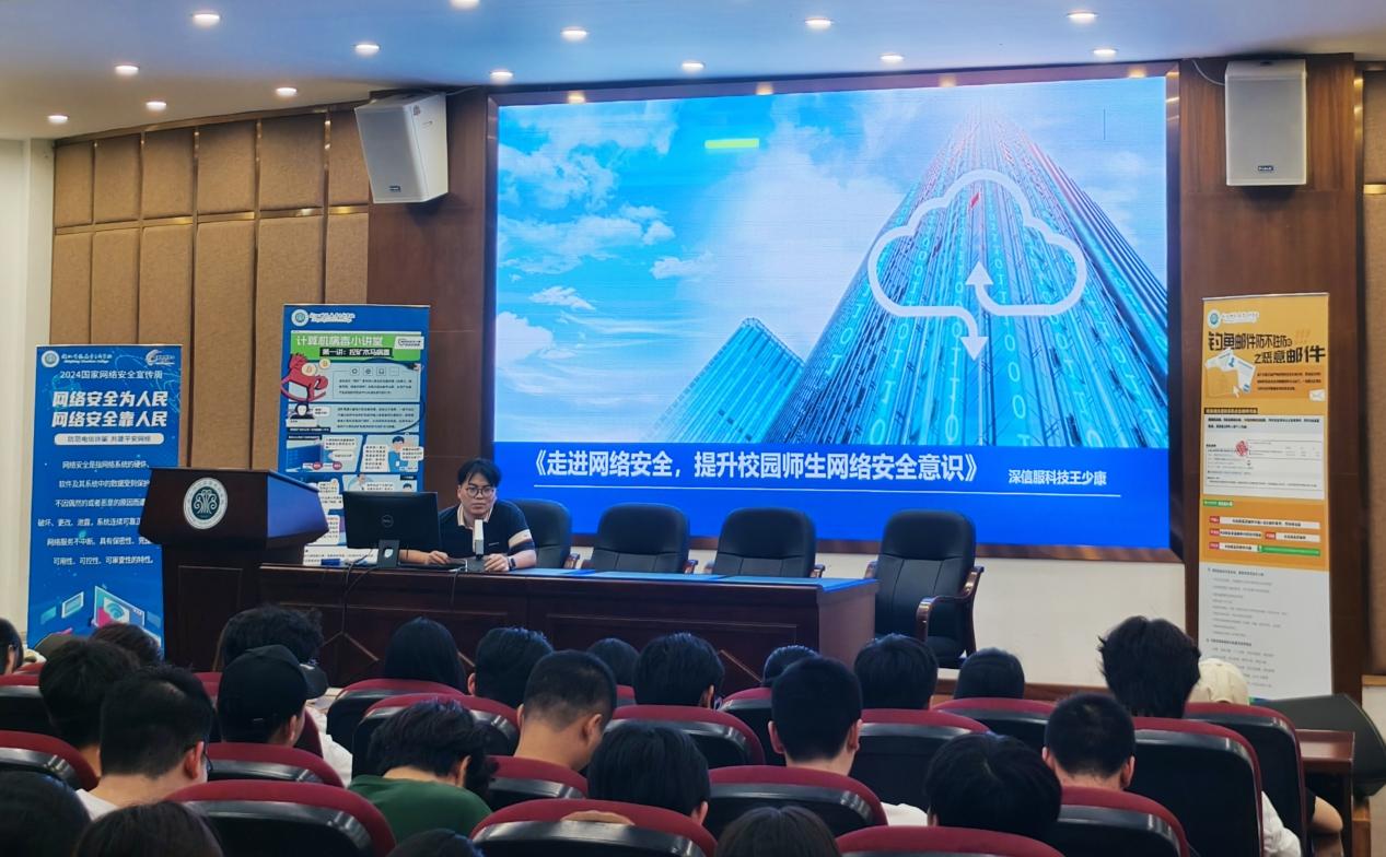 为提升数信学院师生网络和数据安全意识,加强个人信息保护,谨防电信网络诈骗,9月11日下午,数字信息工程学院于仓山校区学术报告厅,举办“走进网络安全,提升校园师生网络安全意识”为主题的网络安全宣传教育讲座,特邀网络安全解决方案专家王少康老师主讲。数信学院教师代表、学生代表参加座谈会,辅导员吴碧莹主持活动。