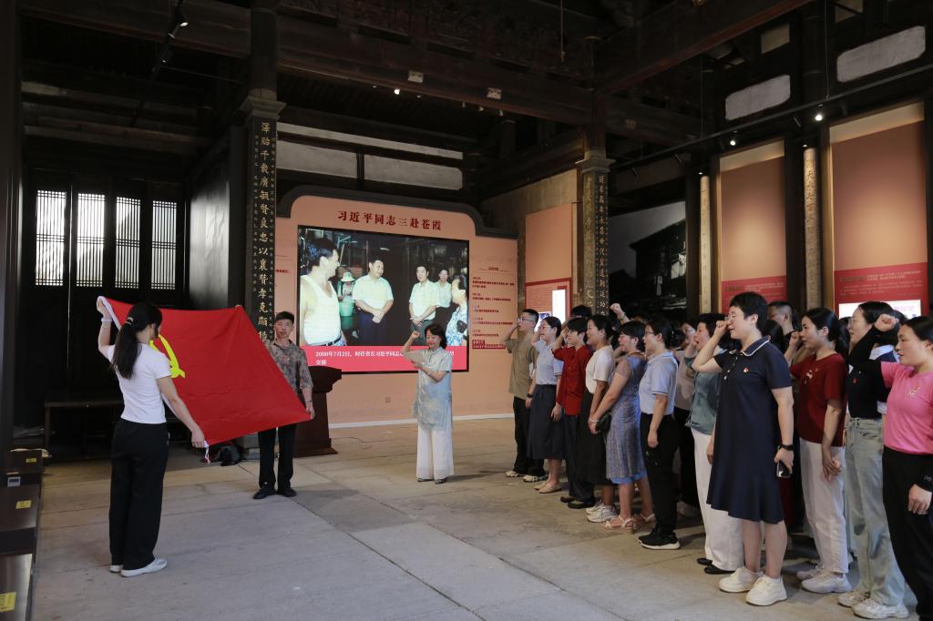师生党员走进“纸褙苍霞”“改造旧城”“世纪搬迁”“幸福生活”等主题展区,重温习近平总书记在福建工作期间亲自推动苍霞棚户区改造的实践历程,感受这片土地从棚屋区到宜居福地的沧桑巨变,深刻感受习近平总书记“请给群众捎句话,政府会把好事办好”生动诠释的为民情怀。全体党员面向党旗庄严宣誓,重温入党誓词,永葆入党初心。