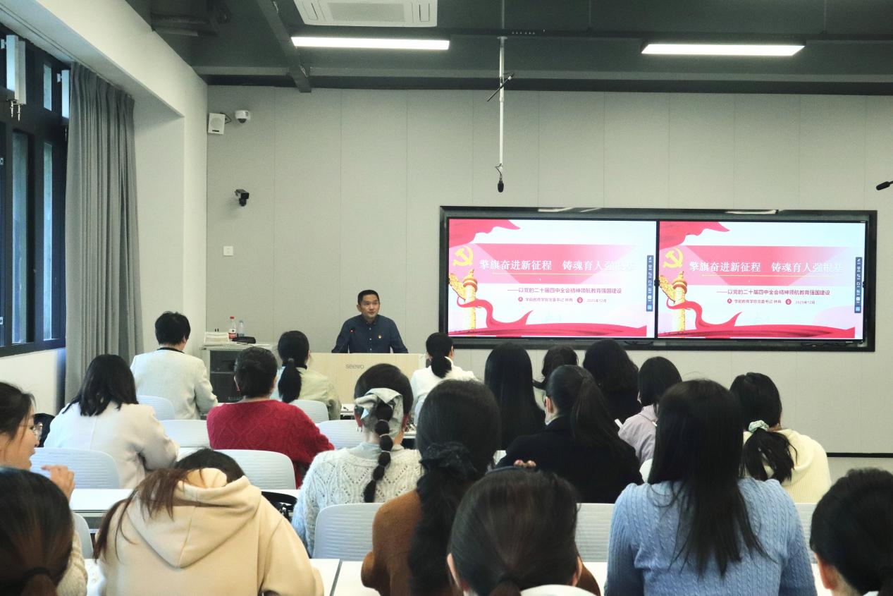 12月10日下午,学前教育学院在旗山校区产创楼105教室组织开展党的二十届四中全会精神专题宣讲会。学院党委书记林冉作专题宣讲。会议由学院党委副书记杨美玲主持。全院党员师生参加宣讲会。