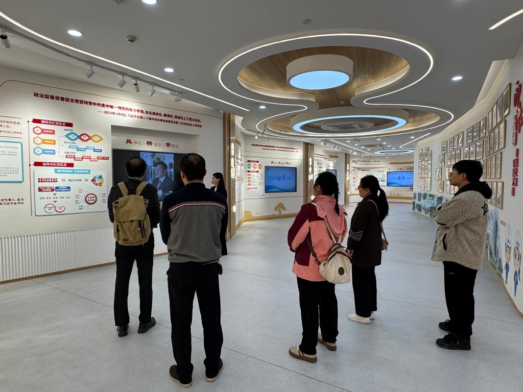 全体党员在专业解说员的引导下,依次参观了“政治引领”“强化监督”“清风徐来”“党员之家”四大板块。解说员从“历史的深度”“理论的高度”“实践的力度”三个维度展开讲解,引领全体党员深入了解中国共产党党风廉政建设的历史脉络,系统重温中国共产党党内监督的百年发展历程。通过解说员生动形象的讲解,支部党员对“做实政治监督、做深日常监督、做准专项监督、做强基层监督”的实践过程有了更为深刻形象的认识,进一步感悟到“纪委也是党员之家”的理念启示和丰富内涵,接受了一次精神的洗礼和党性的淬炼。