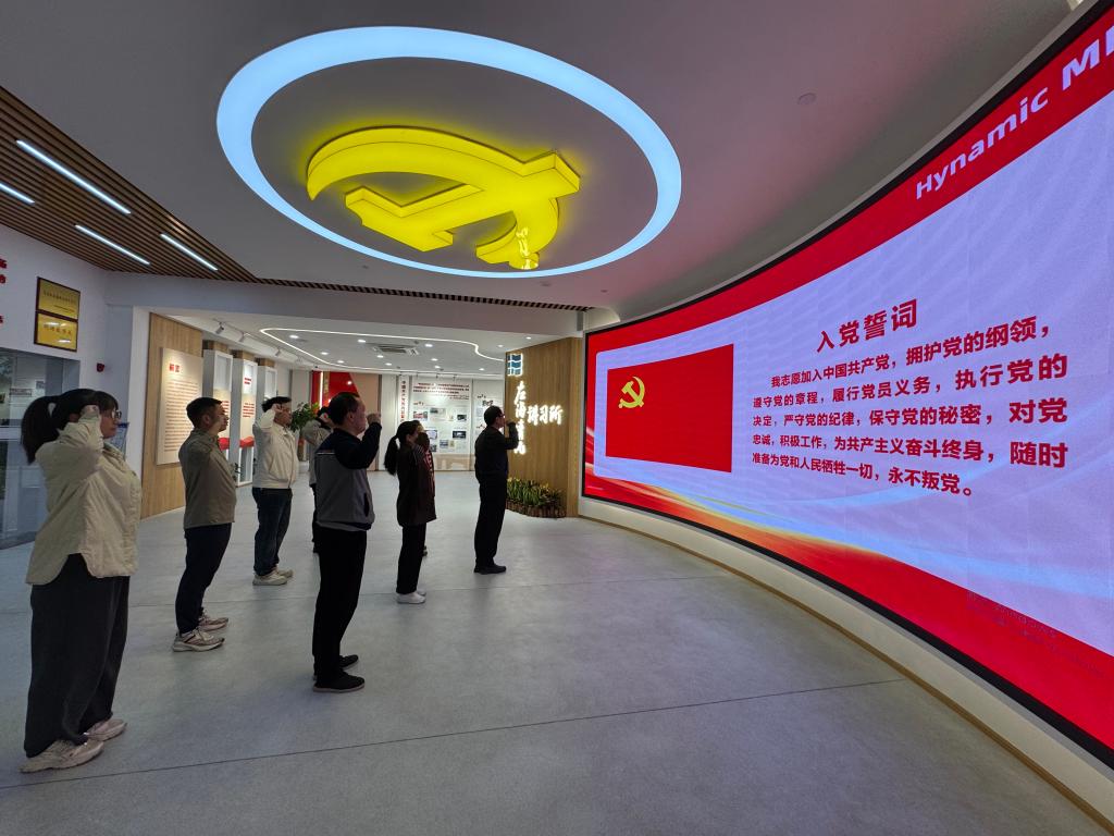 在“党员之家”展区的党旗前,全体党员重温入党誓词。全体党员在党旗下庄严宣誓,铿锵有力的誓言久久回荡,字字千钧,直击心灵,让每一位党员再次感受到入党时的神圣与庄严,进一步坚定了理想信念。