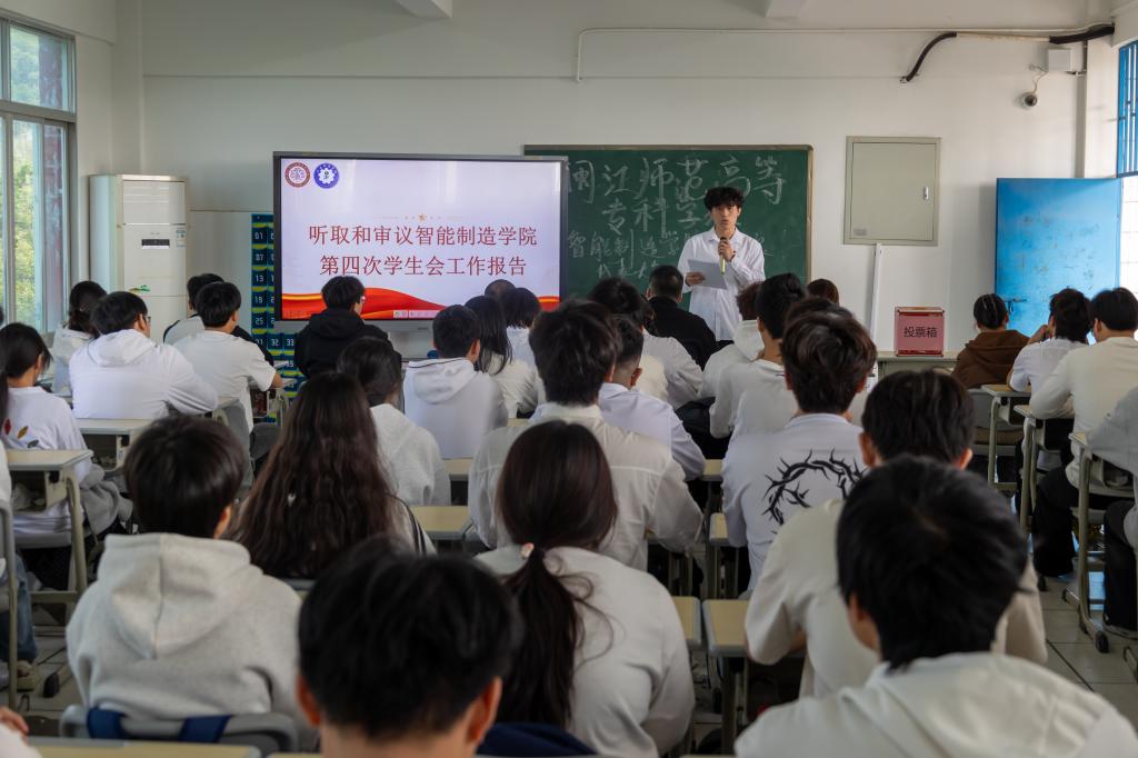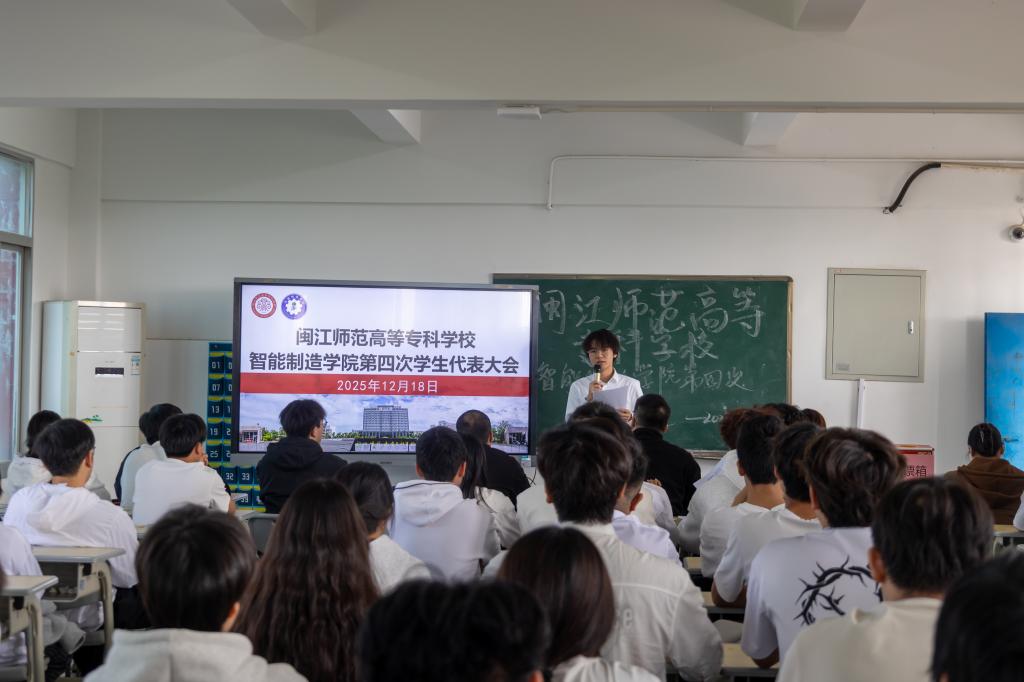 大会审议并通过了《闽江师范高等专科学校智能制造学院学生会工作报告》及《闽江师范高等专科学校智能制造学院第四次学生代表大会选举办法(草案)》等文件。