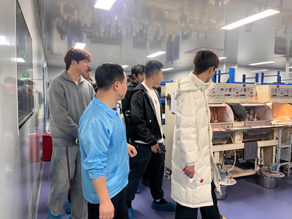 研学中,师生们实地参观了企业生产车间,近距离观摩产品从核心部件加工到成品检测的全流程工序,并与车间技术骨干就产品核心技术、制作工艺要点、岗位能力结构、职业发展通道、工作纪律等内容进行互动交流。