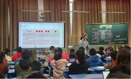 在缪翔老师指导下,实习生毛晨怡为二年级学生呈现了一堂趣味十足的《9的乘法口诀》数学课。课程以“自主探究+趣味巩固”为核心,借助九九消寒图、数轴等教具引导学生发现口诀规律,通过数九歌、手指操、闯关游戏激发学生兴趣,让抽象知识直观易懂,既落实知识目标,又培养学生观察、推理与合作能力,践行新课标“以生为本”理念。