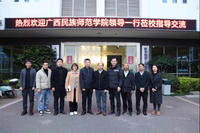 1月20日下午,广西民族师范学院发展规划与质量保障处处长王鹏飞、教务处处长易其顺带领教务处、数学与计算机科学学院相关同志莅临我校开展了深入的调研交流活动。数字信息工程学院院长朱发财、党委副书记(主持工作)郭晓莹及相关同志热情接待了来访嘉宾。