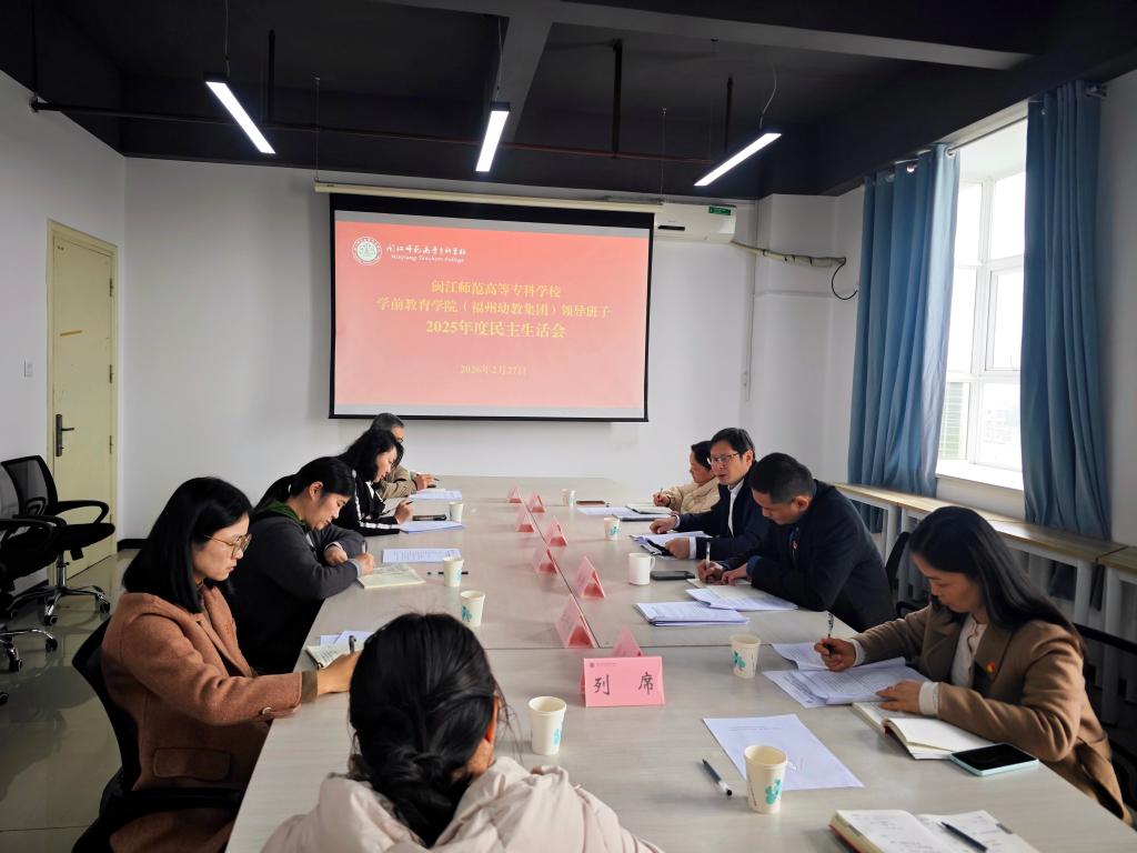 2月27日,学前教育学院(福州幼教集团)党委领导班子召开2025年度民主生活会。学院党委书记林冉主持会议,校党委委员、副校长刘翔炜、校督导组廖素梅同志到会指导。