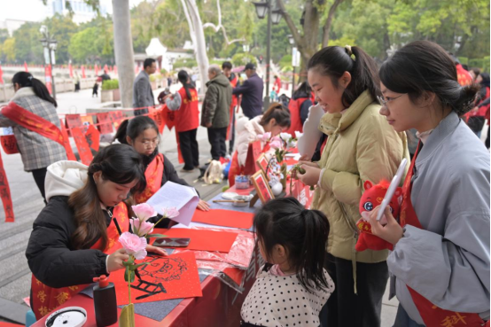 活动期间,微光志愿服务队将红色教育、文化传承与志愿服务有机融合。在福建省革命历史纪念馆,队员们循着历史脉络,在一件件珍贵文物、一段段感人故事中感悟初心使命,通过拍摄“微团课”宣讲视频,将史料解读、青年感悟与实景画面深度融合,让红色基因在新媒体语境下焕发新生;在福州西湖广场,队员们铺展红幅、挥毫泼墨,用笔墨传递新春祝福,以专业素养服务群众,在“义写春联”活动中践行志愿精神,让中华优秀传统文化浸润人心。同时,队员们返乡深入八闽各地,化身民俗文化的探访者与记录者,用镜头捕捉闽南文艺花灯、闽北闹春田等特色年俗,在亲身体验中探寻文化根脉,深刻理解民俗作为民族精神载体的时代价值。