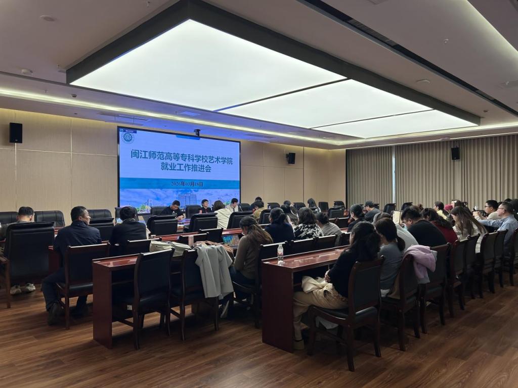 3月18日下午,艺术学院召开2026届毕业生就业工作推进会。副校长、艺术学院党委书记江柳青及院领导班子成员、各教研室主任、团委及学工办负责人、毕业班辅导员、班主任及全体实习指导老师参会。