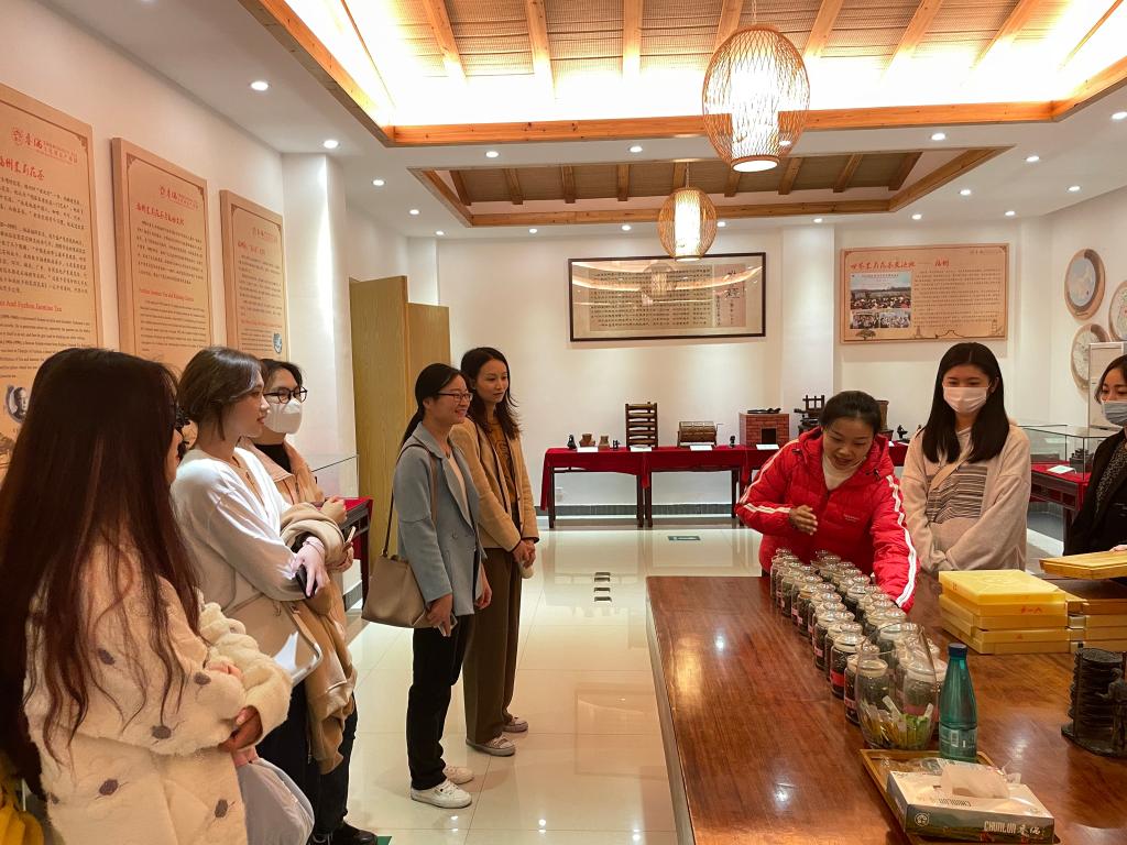 为学习和推广福州茉莉花茶文化,打造具有院校特色的茉莉花茶艺表演队,2021年11月29日下午,人文社科系副主任刘少艾,导游教研室教师邓婕带领人文社科系茉韵茶香茶艺队12名同学前往福建春伦集团开展茉莉花茶文化学习与实训活动。