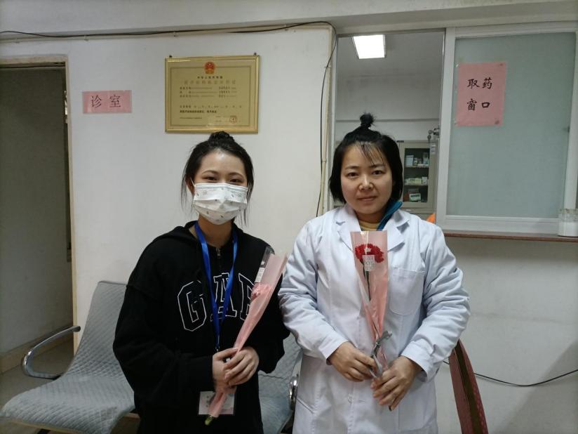 随后,同学们走进校园,为医务室的医生们、宿舍楼的楼管阿姨们、食堂阿姨们送上鲜花。其中,有位楼管阿姨收到鲜花后,颇为感动,表示自己是第一次收到鲜花,她对同学们说“谢谢你们,准备礼物也没有忘记我们!”
